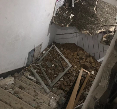意外总会以你意想不到的方式发生,10月19日晚,昆明信息港记者接到爆料,称云南师范大学文理学院龙泉校区一幢宿舍楼发生坍塌。经记者多方了解,实际情况并不是楼房坍塌,而是山体滑坡。该校学生介绍,19日晚19点30分左右,他们听到一声巨响,距离该校三号男生公寓仅几米远的山体发生滑坡,滑下来的土石冲破了男生公寓一楼通往二楼楼道的窗户和防护栏。好在滑坡体量不大,没有导致人员伤亡。