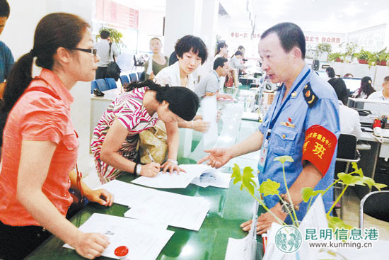 “您有什么事,请到这边办理。”一名身穿蓝色工商制服,手腕上戴着“值班”字样红袖套的中年男子耐心地和办事群众说着话。他就是盘龙区工商局注册监督管理科科长张云龙。