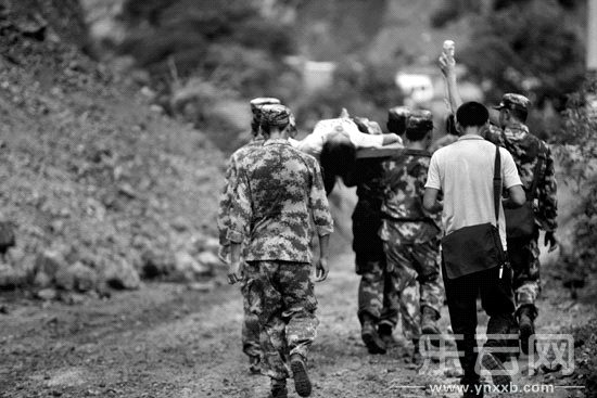 8月3日,武警官兵在云南鲁甸县地震现场救治伤员。