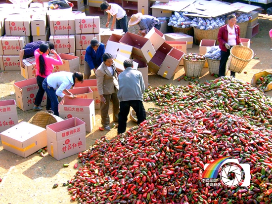 图片说明:呈贡昆明最大的蔬菜交易中心,菜农们精心分类装箱 推销自己的蔬菜。