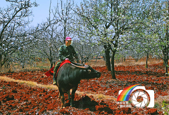 图片说明:万溪冲 梨园老农骑牛摇行,天真浪漫。