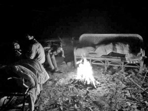 8日凌晨时分,永平镇大雾,居民不敢回家,在户外生火取暖。 通讯员 张斌/摄