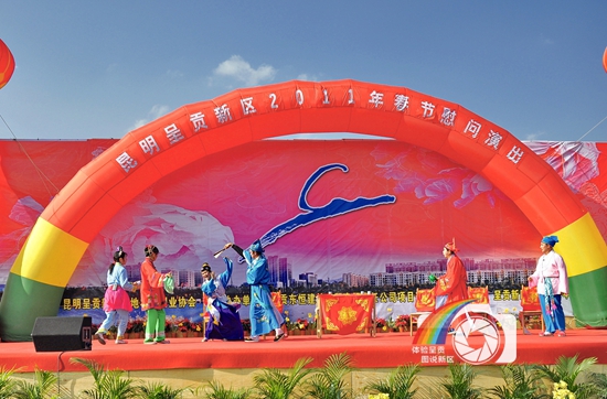 图片说明:8-2011.2.16.艺术团代表昆明呈贡新区对失地农民和农民工的春节慰问演出。