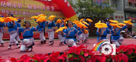 图片说明:201-8-3日老年大学学员在文化广场表演的花灯歌舞《绣荷包》。