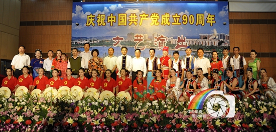 图片说明:2011-6-29日由老年大学举办的庆祝建党90周年文艺专场在呈贡区法院会议厅演出。