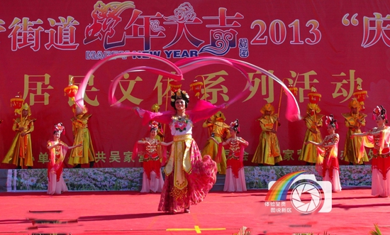 图片说明:2012春节呈贡区老年大学艺术团在吴家营街道演出五场大型花灯歌舞剧《四大美人传奇》。