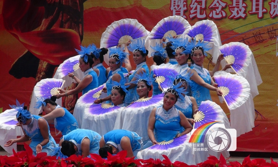 图片说明:20128-3日老年大学学员在文化广场表演的舞蹈《茉莉花》。