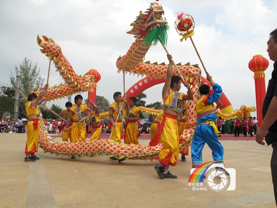 图片说明:呈贡新区第四届山歌文化节的龙舞表演。