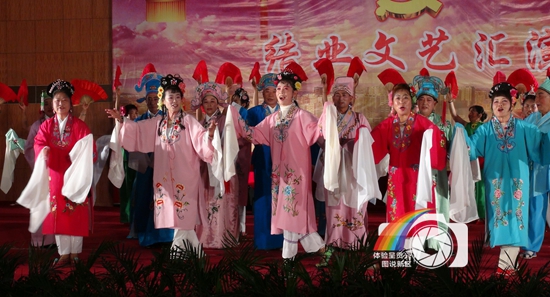 图片说明:老年大学花灯唱腔及表演班的学员在演出花灯表演唱《送别》。