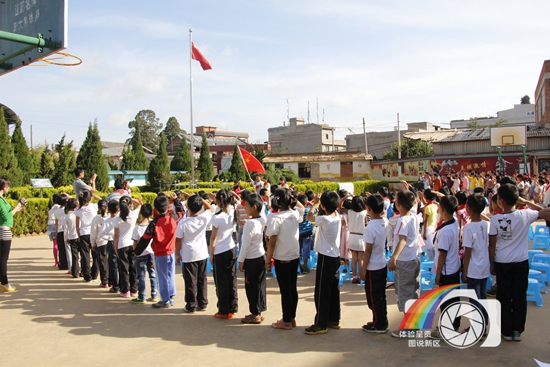 图片说明:国旗下,一张张稚嫩的笑脸,代表着一个个梦想,代表着一个个未来,他们的成长背负着亲人的期望,更是肩负着祖国繁荣的希望。