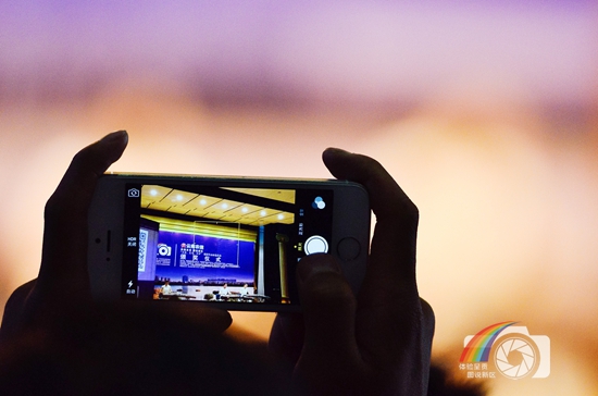 图片说明:走进建设者镜头的建设者!体验呈贡图说新区颁奖现场,一名获奖者举起手机抓拍现场演出人员,于是她们走进了她的镜头,又一起走进了我的镜头。新区建设有硬件建设也有软件建设,有你,有我,也有他(她),还有你们、我们和他(她)们,小中见大,这是一个众人拾柴火焰高的叙事。