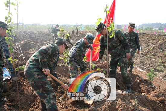 驻呈部队的官兵种下一颗颗树苗,为呈贡增添绿色。