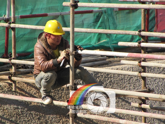 工人们在烈日下一砖一瓦搭建最坚实的建筑。