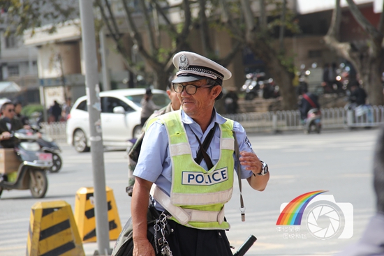 图片说明:面对井然有序的交通,一个协管员简单会心的一个笑容,让我们读懂什么是热爱?!什么是敬业?!什么是欣慰!