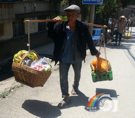图片说明:一前一后的平凡人家,挑起的不仅仅是用汗水浇灌出的果蔬,也是用汗水浇灌出的生活。