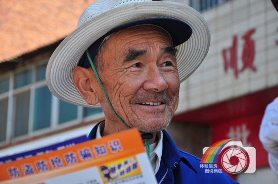 图片说明:龙街上一会老人在认真听取女警宣传队员讲述安全防范常识。