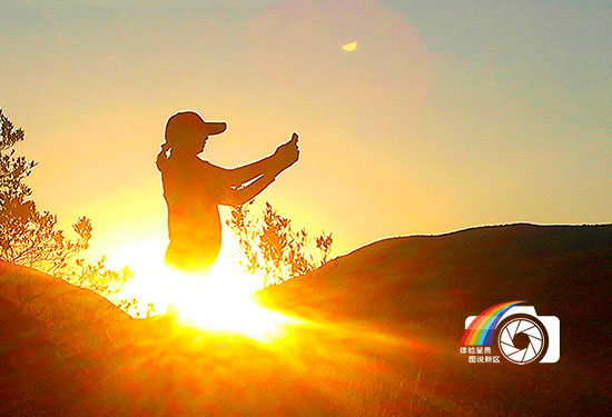 图片说明:摄于呈贡万溪冲。西边的太阳还未落坡,东方的月亮又爬上了山头,福地万溪冲被这日月相交的光芒照得通亮。此时,还沉浸在春节喜庆中的不少村民.游人纷纷驻足赏景.拍照。我幸运地抓拍到这一奇观。