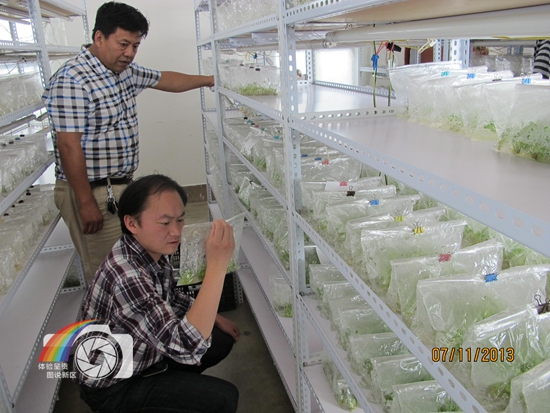 图片说明:郑国华(左一)在公司组培室查看新技术育苗情况。天行健,君子自强不息。郑国华,现年34岁。他是一个自强不息的铮铮君子,凭着真实苦干,执着追求,敢为人先的创业精神,用辛勤的汗水造就了成功之路。