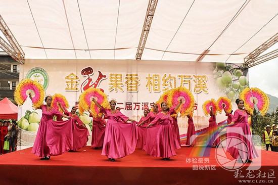 图片说明:呈贡举行万溪宝珠梨采摘节上的舞蹈表演。