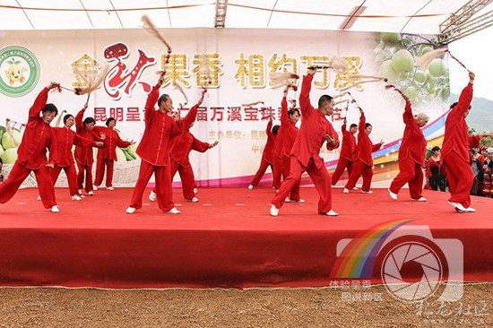 图片说明:呈贡举行万溪宝珠梨采摘节上的舞蹈表演。