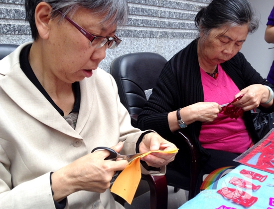 图片说明:图为呈贡非物质文化传人正在示范剪纸艺术。