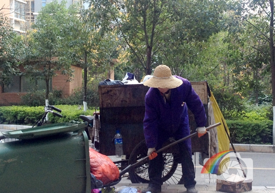 图片说明:拍摄于呈贡惠兰园,清洁工人正在清扫小区的生活垃圾。