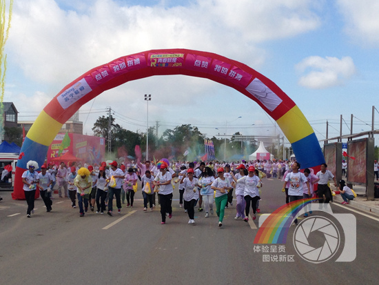 图片说明:彩虹跑是一场释放快乐的跑步方式,在沿着呈贡仕林街5公里左右的环形路段,参与者可以走过去、跑过去、跳过去,怎么舒坦怎么做。