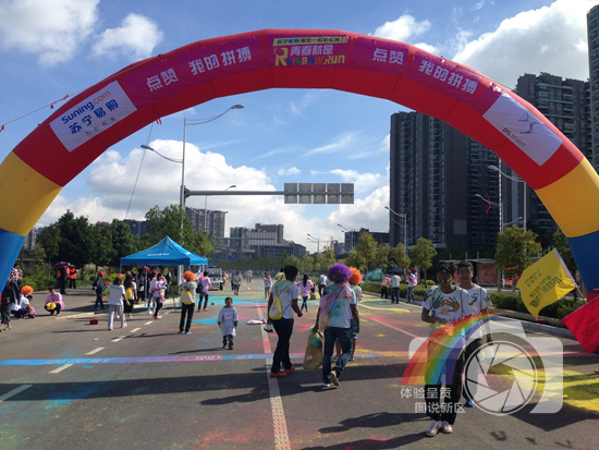 图片说明:9月27日,呈贡“彩虹跑”,人们的脸上身上都弥漫着彩虹粉末,路上也留下了五颜六色的“青春印迹”。