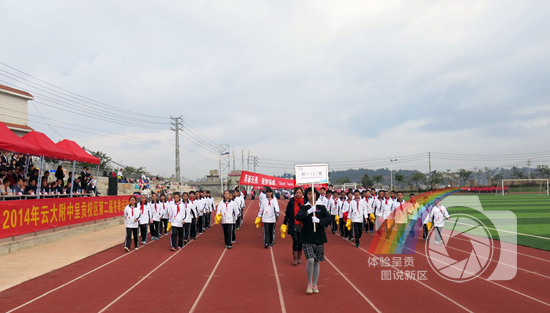 图片说明:云大附中呈贡校区(呈贡新区中学)举行冬季运动会,初一学生打出青春无畏,逐梦扬威的横幅。