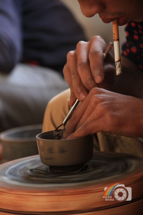 图片说明:摄于呈贡望山小院。图为陶瓷工艺师正在制作着自己心仪的作品。