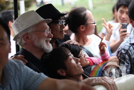 图片说明:图为云南中医学院学生们热情地邀请毕肖普博士(Dr John Michael Bishop,1989年诺贝尔生理学医学奖得主)一起合影留念。