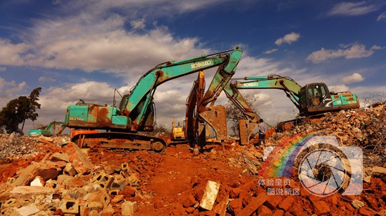 图片说明:图为大王家营征地拆迁时所见。机械们和人们一样忙碌,清理建筑垃圾。