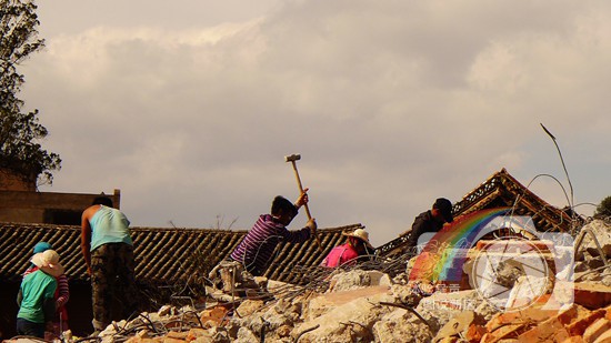 图片说明:图为大王家营征地拆迁时所见。平凡朴实的工人们正在拆迁。