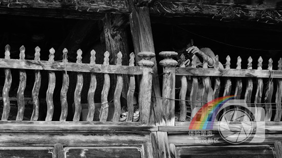 图片说明:拍摄于呈贡乡村。图为一个小伙子正在拍摄呈贡民居的特色花纹。