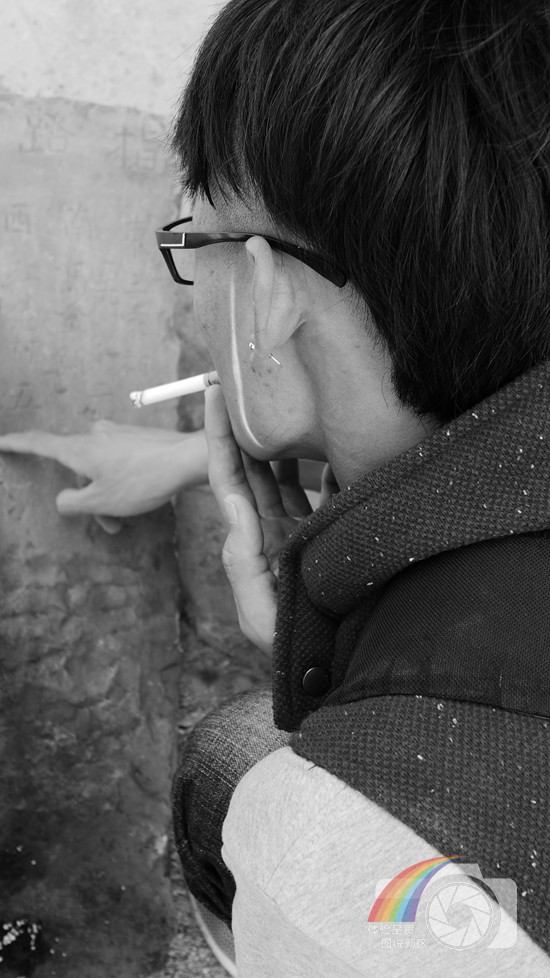 图片说明:在从大王家营的废墟中回来的路上,一群人在热烈的讨论一块刚刚出土的路碑。一個村民向我们求证它是否会值得很多钱。图为我的同伴认真辨别碑上图文。