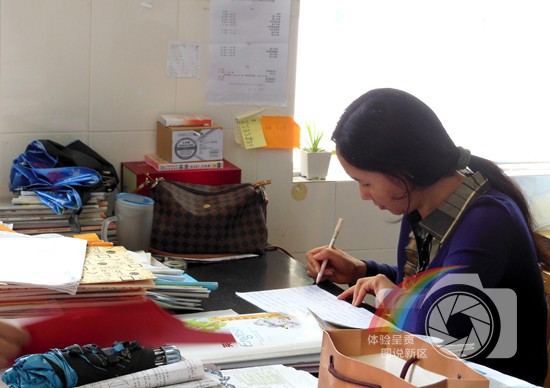 图片说明:图为呈贡区一中教师正在课余时间认真批改学生作业,他们默默无闻,他们诲人不倦,呕心沥血。