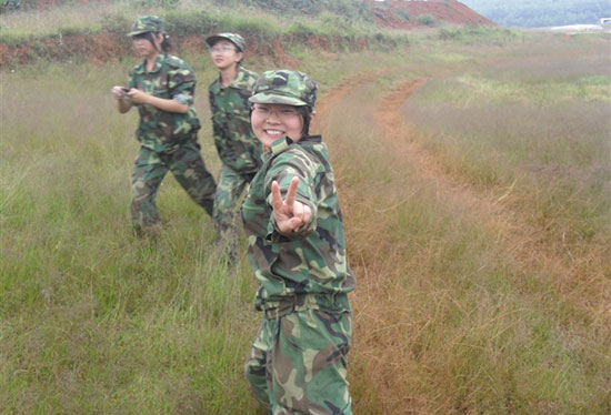 图片说明:图为云南民族大学大一新生军训时的笑容。