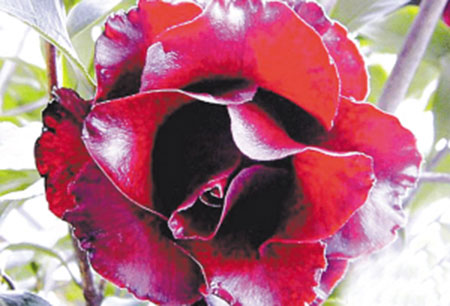 黑魔法:从国外引进的黑色山茶花,是目前山茶花大家族中花色最深的品种。黑魔法的花形如喇叭,初开时花色极黑,逐步变为黑红色。