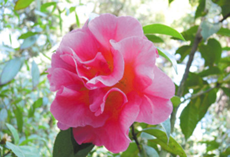 早桃红:这是花开得最早的云南山茶花之一。花呈桃红色,形如蝶翅。郭沫若专门有诗盛赞该品种,“茶花一树早桃红,百朵彤云啸傲中”。