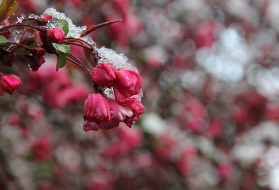 海棠种类繁多,明代《群芳谱》记载:海棠有四品:西府海棠、垂丝海棠、木瓜海棠和贴梗海棠。垂丝海棠轻柔曼妙的身姿被古代的文人墨客所偏爱,盛赞其娇艳的花色胜过桃花。春日里,微风拂过,垂丝海棠的花瓣如花雨般徐徐飘落,平添几许浪漫气息。