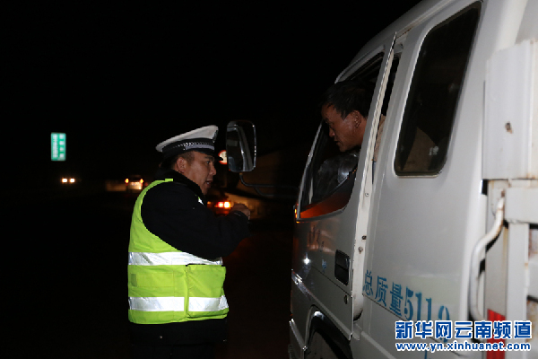 晚上9点,普刚又开始了夜间的流动巡逻。为确保道路的安全畅通,昆曲大队的交警每天晚上都要对辖区路段例行巡逻,而在春运期间,由于事故频发,他们经常工作到凌晨,甚至通宵处理事故,疏导交通。