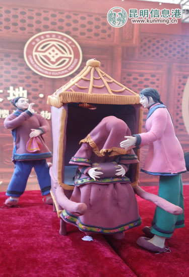 面塑,选用上等糯米面为主要原料,添加各种颜色和水,反复糅制,直至扯不断,摔不裂时,根据买主的要求而做,或人物、或是各类动物,只要你说出名堂,几分钟之内,一个鲜活作品就可完成。