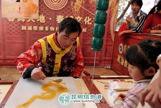 作糖塑的人是没有底稿的,画稿全在头脑里。作糖塑必须胸有成竹,要趁热一气呵成,十二生肖喊来就来,花鸟鱼虫、飞禽走兽,随着缕缕糖丝的飘洒,便栩栩如生地呈现在你面前,再趁热贴上一根竹签或套上透明的塑料袋,便大功告成。