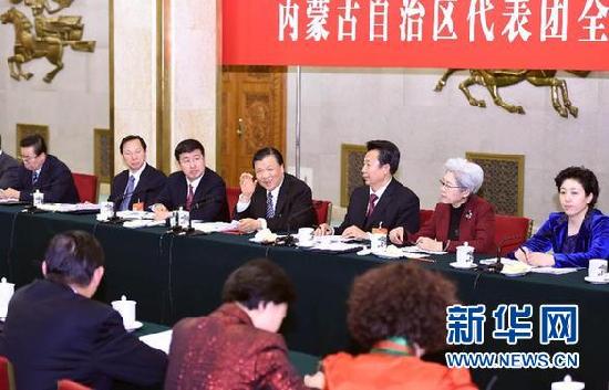 3月5日,中共中央政治局常委、中央书记处书记刘云山参加十二届全国人大三次会议内蒙古代表团的审议。 新华社 记者高洁/摄