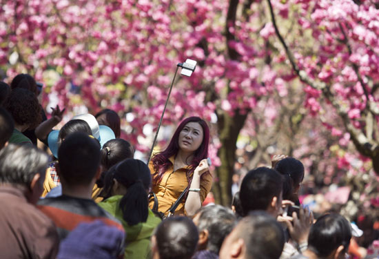 与欢乐的赏花场景相比稍不和谐的是,记者在圆通山花潮区看到,游客各种“摧花”行为,如拽着花枝拍照,摇树干只为看花瓣纷纷落下,爬到树上与花合影和乱丢垃圾等,让令人心醉的花潮多了一些遗憾。对此,昆明动物园相关负责人表示,公园专门组织了数十名工作人员组成的护花队,每天都要劝阻几十起“摧花”事件。公园方希望,游客爱花莫摧残花朵与花树,让美景多留些日子。