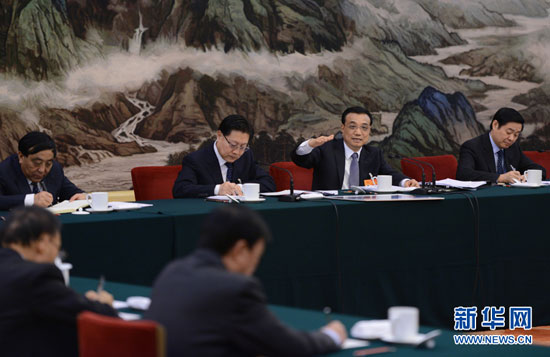 3月8日,中共中央政治局常委、国务院总理李克强参加十二届全国人大三次会议四川代表团的审议。 新华社 记者高洁/摄