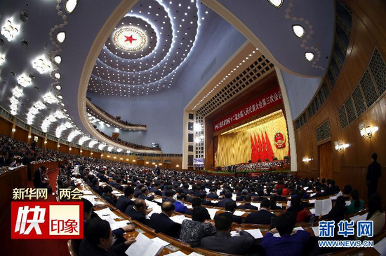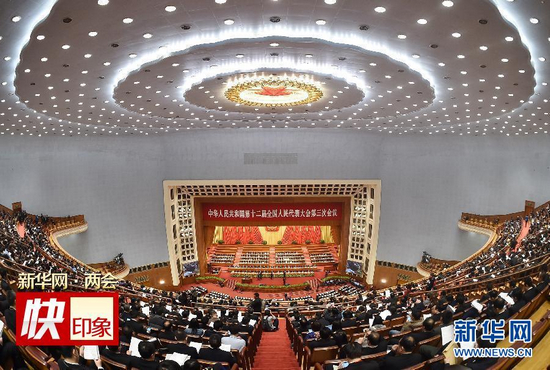 3月12日,十二届全国人大三次会议在北京人民大会堂举行第三次全体会议。新华社记者丁林摄