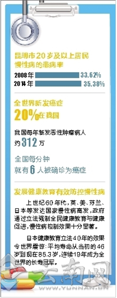 久坐、不运动等不健康的生活方式导致城乡居民多种慢性病的发病率和死亡率持续增高,居民健康问题引起了云南代表团的关注。这次云南代表团向大会提交的3件议案中,有一件就是《关于制定国民健康教育法的议案》,由45名代表联名提出。