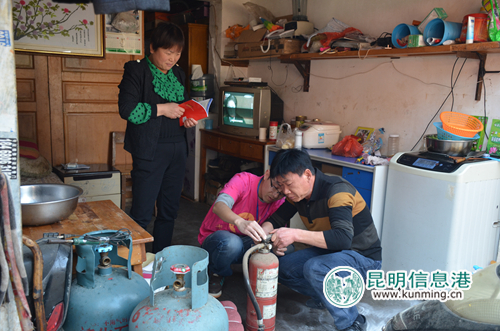 昆明信息港讯 通讯员甘露 林增 3月12日,关上中心区社区联合关上派出所、关上街道综合执法三中队,对军威过渡农贸市场及周边商铺进行了消防安全检查。社区工作人员将《公众安全应急手册》送给了每一家商户,并现场出题考验商户对灭火器的操作,以及自检情况。