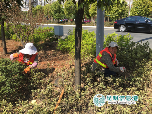 官渡区对国际会展中心附近绿化景观进行靓化提升